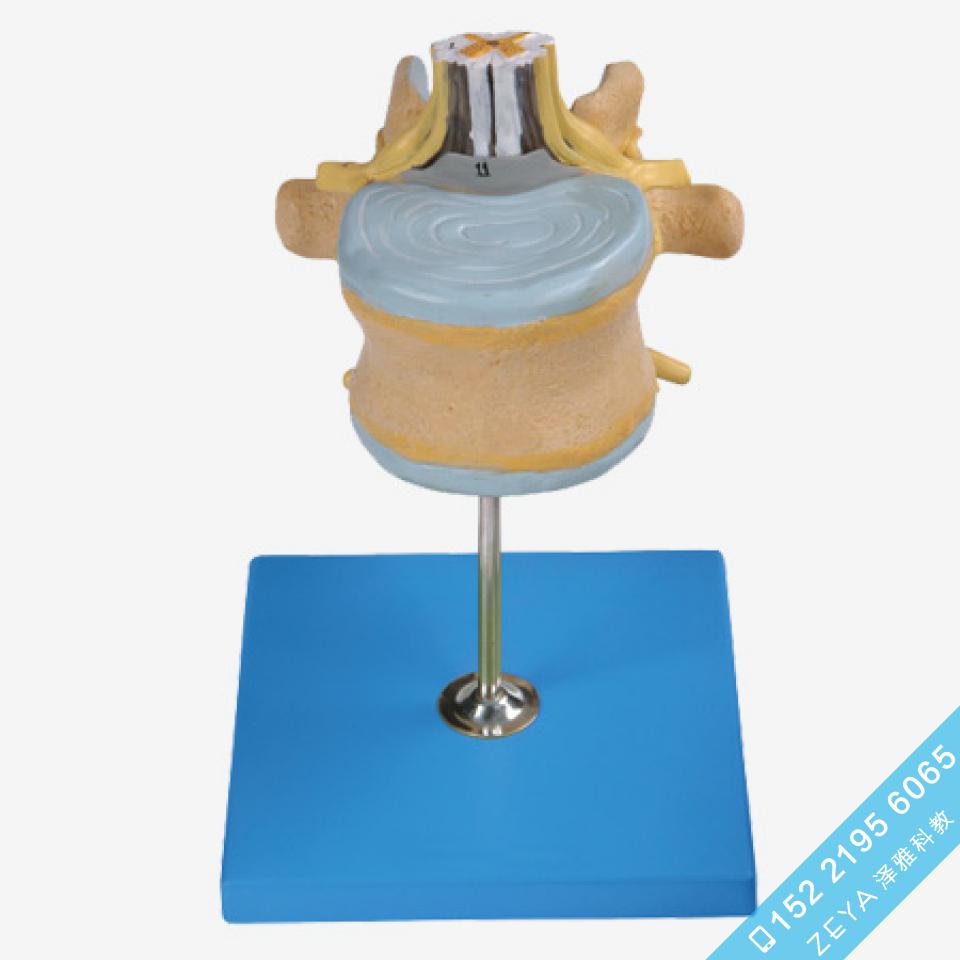 ■ 该模型由腰椎脊髓与马尾局部的冠状剖面两部件组成,显示脊髓腰骶膨大、脊髓圆锥、终丝、马尾以及椎间孔、腰神经和硬脊膜等结构,共有11个部位指示标志。