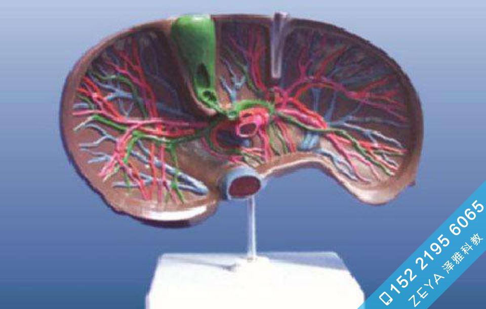 ■该模型显示肝的分叶、肝的血管分支和胆囊、胆管系统等结构,共有28个部位指示标志。