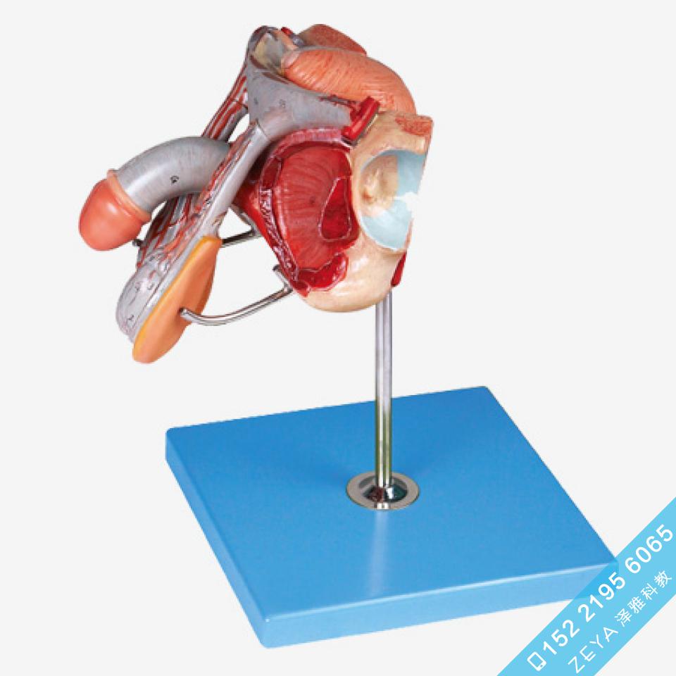 ■该模型由男性生殖器官、膀胱矢状切面和阴茎横切面等5个部件组成,并显示内、外生殖器、膀胱、男性尿道以及男性会阴等结构,共有72个部位指示标志。